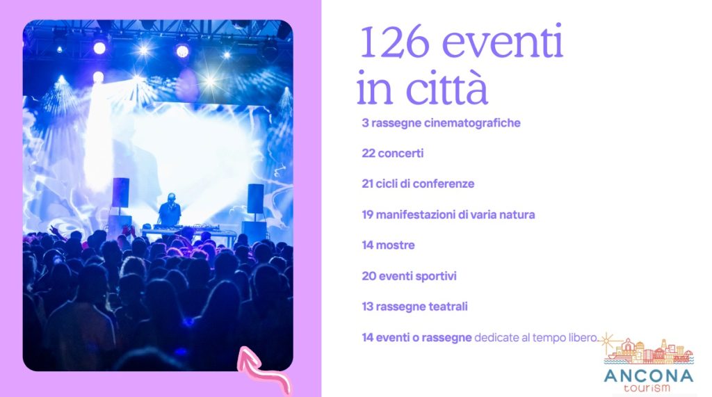 Decisamente positiva l’esperienza dei festival di caratura nazionale quali Popsophia e Ulissefest, veri volani per l’attrattività della destinazione: solo l’Ulissefest ha sviluppato 19 milioni di visualizzazioni e 20mila presenze, una occasione straordinaria per la promozione e visibilità, anche social, del nostro territorio). A questi si aggiunge un dato particolarmente significativo: 121 eventi organizzati dal Comune nel solo 2025, tra manifestazioni, concerti, eventi sportivi, spettacoli teatrali, mostre e attività per il tempo libero. Un’offerta ampia che testimonia una città vivace, partecipata e capace di generare movimento reale: la gente si sposta, partecipa, torna. La varietà e qualità degli eventi hanno contribuito alla costruzione di un modello turistico sostenibile, inclusivo e partecipato, rafforzando la destagionalizzazione e confermando Ancona come meta vivibile durante tutto l’anno “Parte essenziale del progetto – mette in chiaro l’assessore al Turismo, Berardinelli – è la sinergia tra pubblico e privato. L’Amministrazione ha istituito tavoli permanenti con operatori, categorie economiche e realtà culturali, favorendo la condivisione delle scelte e la costruzione della destinazione. In particolare sta rafforzando il rapporto con l’associazione Riviera del Conero e l’ente Parco, fondamentale per la promozione del turismo ambientale e sostenibile. L’efficienza amministrativa sta migliorando grazie all’adozione di strumenti digitali e alla semplificazione della comunicazione con gli operatori.